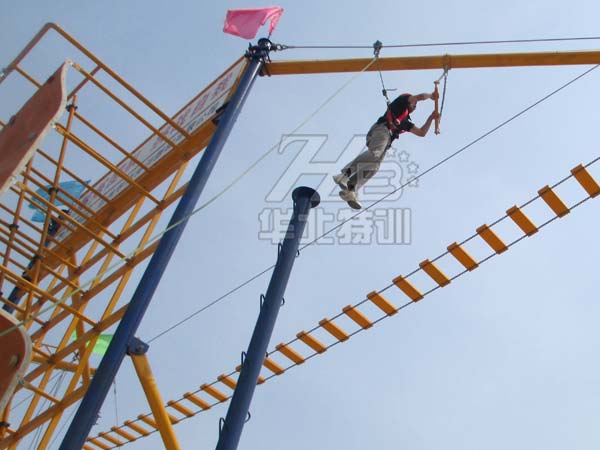 規格:占地17米×17米,由15個1米×1米×4米高的站臺組成。平臺高2米。起點和終點設有樓梯。   包含項目:獨木橋、勇往直前、圓木橋、圓木秋千、等…
